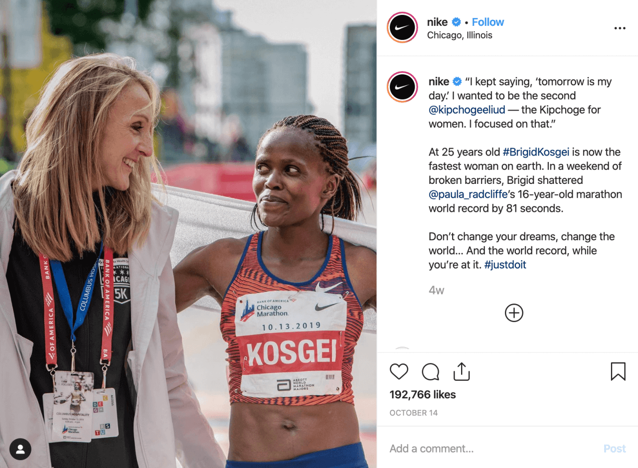 耐克的品牌体现在其在社交媒体上发布的所有内容中。在写这篇文章之前,我跳到了Nike的主要Instagram帐户,以下是我发现的一些帖子: