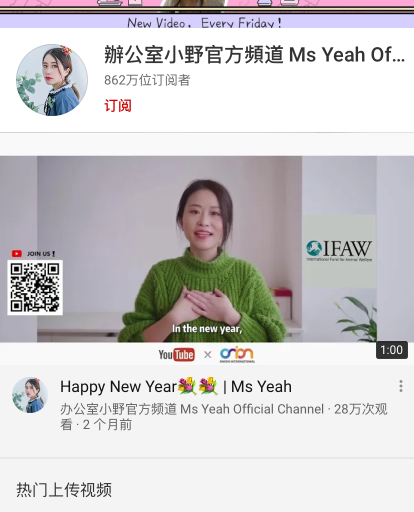 据了解,办公室小野并非是在国内走红之后才进军海外的,早在2017年2月,她就开通了YouTube频道,当年订阅数就突破了100万,刷新了YouTube创作者的成长记录。
