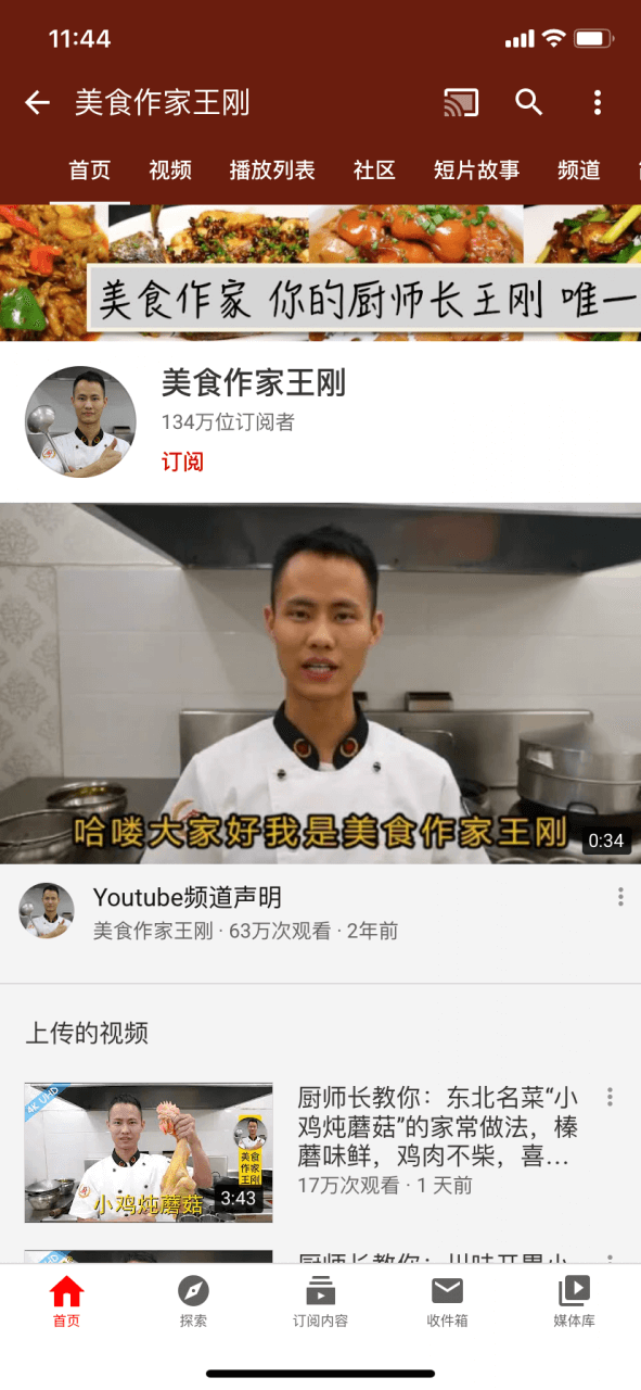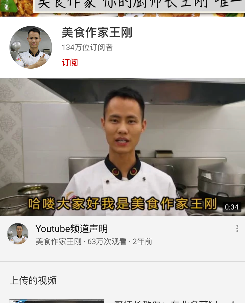 “美食作家王刚”也是在YouTube上拥有百万粉丝的视频创作者,如今他在平台上吸引了134万位订阅者。