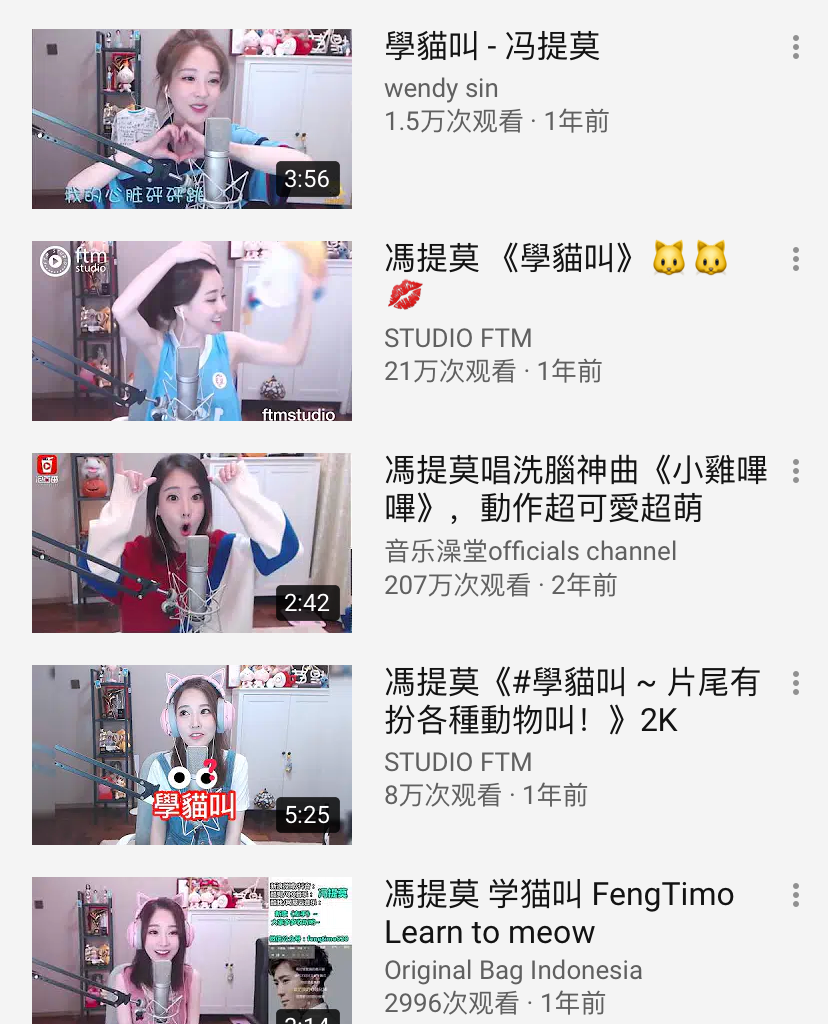 ▲冯提莫版本的《学猫叫》在YouTube上颇受欢迎