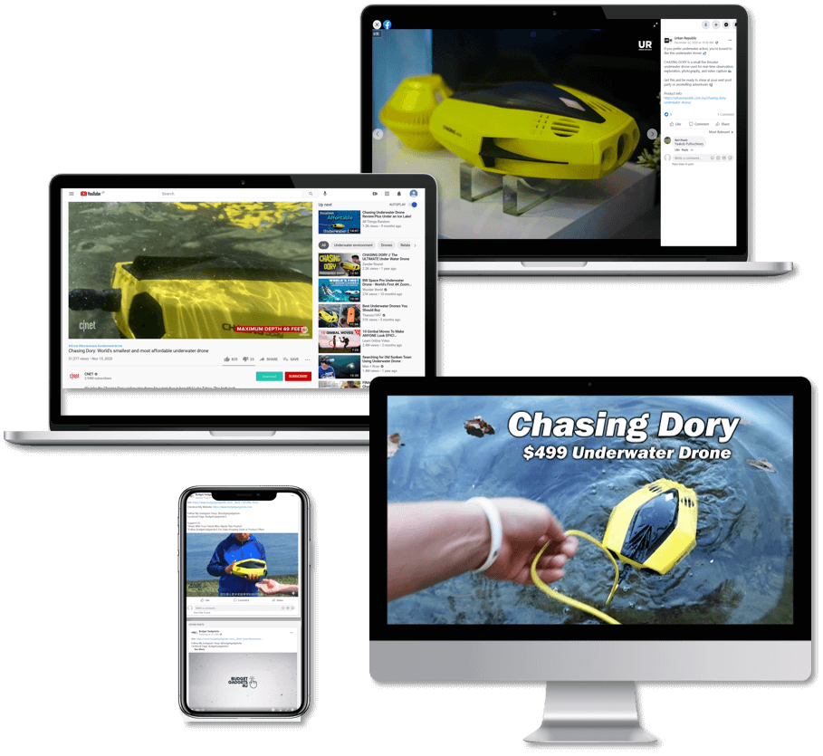 Chasing Dory全新水下无人机在北美发售,针对非常清晰和明确的消费群体,因此,准确邀请“对的人群和媒体”完成开箱是本次难点。本次项目不仅是科技、行业YouTuber,我们还完成了北美头部科技媒体CNET的YouTube测评。